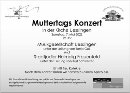Wir von den Stadtjodler Heimelig Frauenfeld möchten uns bei der MG Uesslingen recht herzlich bedanken für die Einladung zum Muttertagskonzert.